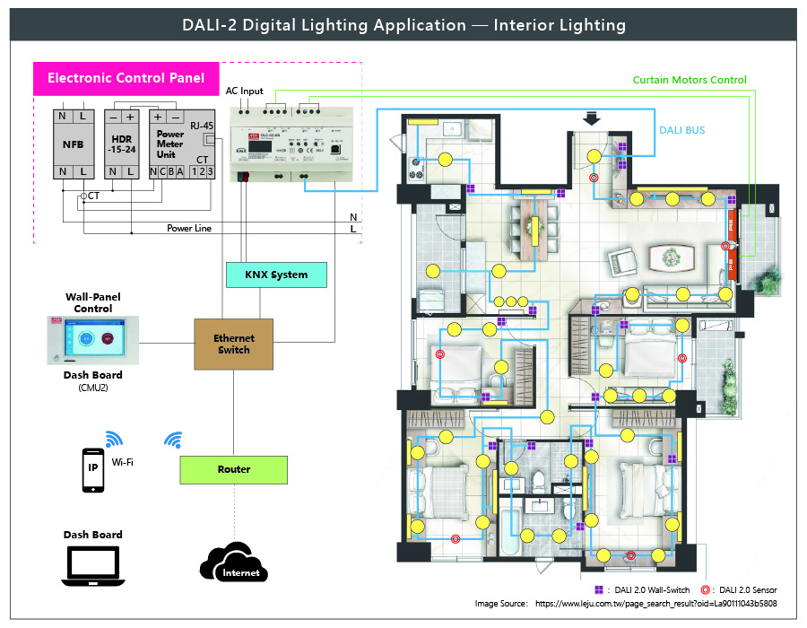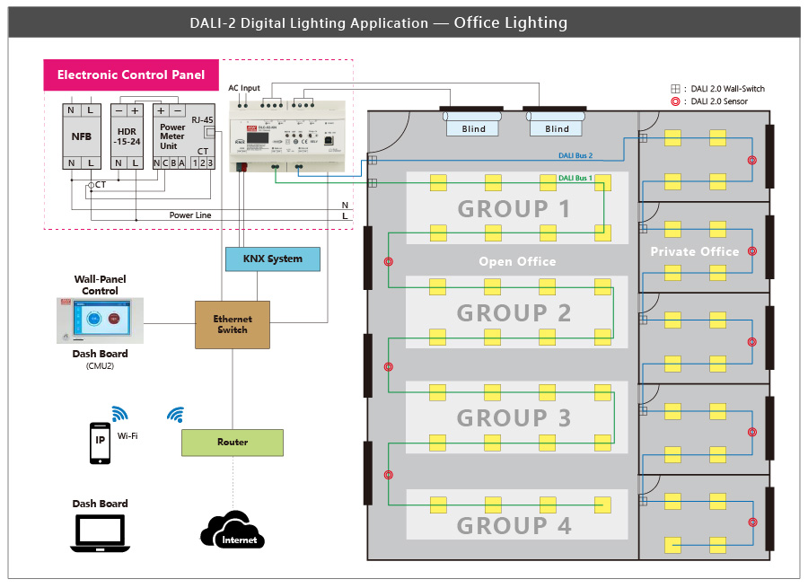 With the market trend of 5G and smart home applications, the digital lighting system and building automation have attracted more attention and how to effectively integrate all the lighting systems of buildings or smart homes at the same time and combine the control into a building automation system, will be a key feature and advantages. MEAN WELL has Stepped into the (BA) building automation system, in addition to providing KNX building automation products, officially launched the new digital lighting controller, the DLC-02 series, capable of controlling the DALI Digital lighting system, and the KNX complies with the DALI-2 regulations. DLC-02-KN (KNX to DALI Gateway) effectively integrates into the KNX building automation system; the installer can choose the suitable product according to the scale of the area.