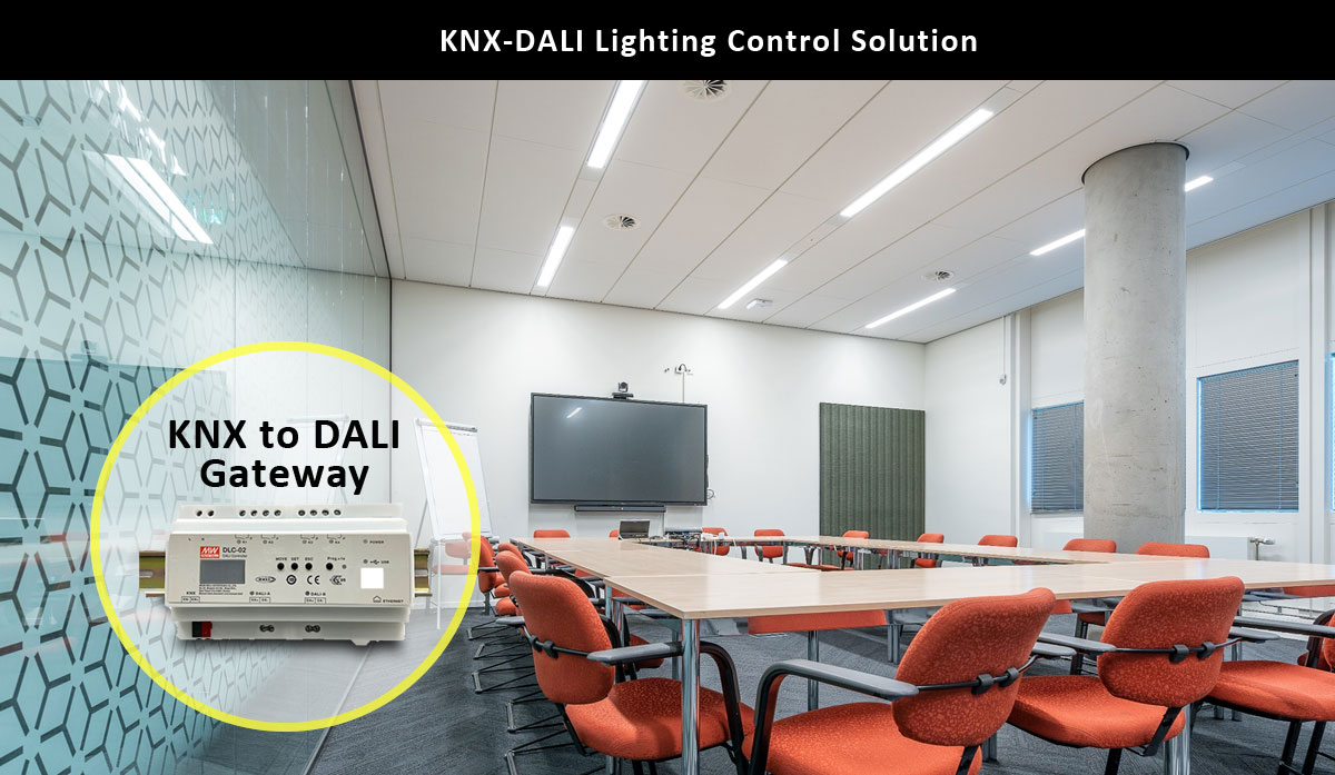 MEAN WELL KNX to DALI gateway can be connected to a variety of KNX control devices to perform DALI lighting control.