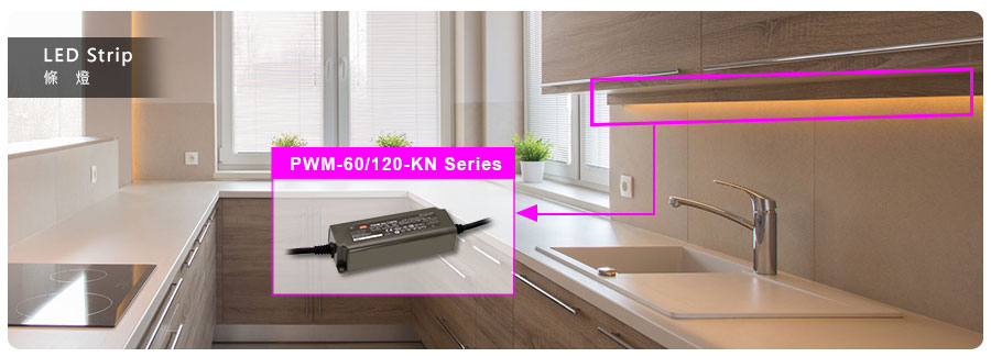PWM-KN series is an AC/DC LED driver featuring the constant voltage mode with PWM style output, which is able to maintain the colour temperature and the brightness homogeneity when driving all kinds of LED strips and the KNX interface to avoid using the complicated KNX-DALI gateway.